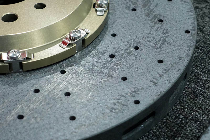 Carbon Ceramic är ett kompositmaterial med dubbla matriser, en tredimensionell filt eller fläta av kolfiber som förstärkningsskelettet, och en matris som består av kol (C) och kiselkarbid (SiC). Så materialet kombineras med fördelarna med kol och SiC, med hög seghet, låg densitet, bra värmebeständighet, hög värmestabilitet. hög nötningsbeständighet och stor oxidationsbeständighet. Under högtemperaturmiljö kan kolmatrisen ge buffring och seghet för värmen, för att förhindra att materialet spricker kan den dra tillbaka minst 1650 ℃ temperatur. Tillverkningsprocessen innebär att man först förbereder ett C/C-kompositmaterial och sedan introducerar SiC-fasen genom metoder som flytande kiselimpregnering. Till exempel framställs först en C/C-förform med användning av metoder såsom kemisk ångavsättning eller hartsimpregneringsförkolning. Därefter bringas förformen i kontakt med flytande kisel, där kisel reagerar med kol vid hög temperatur för att generera SiC, samtidigt som porerna i förformen fylls. På grund av de utmärkta omfattande egenskaperna används de kolkeramiska skivorna i stor utsträckning i avancerade stridsflygplan, höghastighetsräls, racerbilar och sportbilar, etc. Materialet kan uppfylla de strikta kraven på hög hastighet, hög belastning och högtemperaturmiljöer i bromssystemet för denna avancerade utrustning.