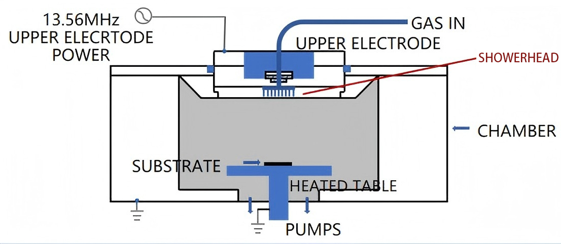 I plasmaassisterade processer (såsom PECVD och torr etsning) måste dessutom duschhuvudet, som en del av elektroden, också generera ett enhetligt elektriskt fält genom en RF-kraftförsörjning för att främja enhetlig fördelning av plasma, och därmed förbättra enhetligheten i etsning eller avsättning.