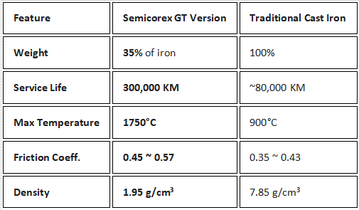 Massreduktion: GT-versionen väger endast 35 % av en vanlig gjutjärnsskiva.