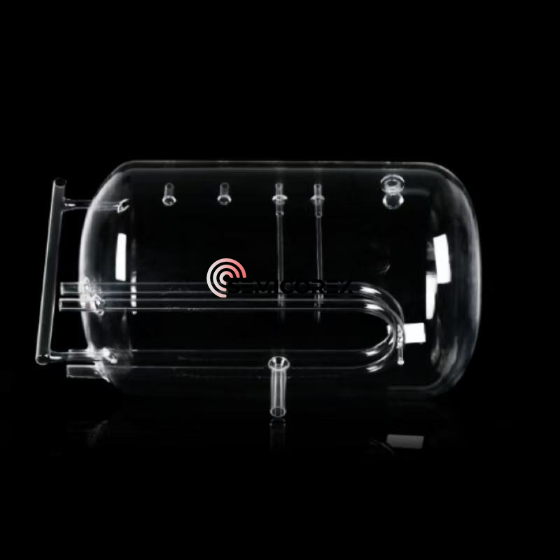 Tanken är gjord av hög renhet smält kvarts som är mycket resistent mot starka syror, alkalier och lösningsmedel som regelbundet används vid halvledarrengöring och litografi. Oavsett om en konventionell behållare ger kvarts bitarna flytande material den bästa chansen för ingen sekundär förorenande exponering, lakning eller oönskad jonexponering. En av de ledande aspekterna av kvartsvätsketanken är förmågan att stödja analytiska arbetsflöden i halvledar -fabs, eftersom de återstående vätskorna som samlas in i ett kvartsfartyg kan användas i nedströmsprocesser såsom föroreningsdetektering, kontamineringsanalys och kemisk återvinning. Innehåller egenskaperna hos kvarts kan den säkert innehålla restvätskor och möjliggöra visuell bedömning utan risk för interaktion med tanke på dess inerthet och transparens, utöver dess termiska stabilitet, vilket gör det möjligt att vätska i tanken påskyndas till någon processtemperatur utan risk för att bryta eller påverka vätskan. Som sagt, kvartsvätsketanken är utformad för både avfallsinsamling och kortvarig lagring innan de överförs eller behandlas.