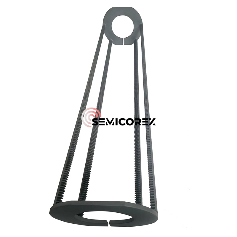 De vertikala ugnsbehandlingsmiljöerna kräver ett skivstödssystem som tål upprepade exponeringar vid hög temperatur, ofta överstiger 1 200 ° C och förblir dimens-sionally stabila utan föroreningsproblem. Sic vertikala båtar utmärker sig i sin robusthet i dessa situationer på grund av de inneboende mekaniska och termiska egenskaperna hos omkristalliserade eller CVD -kiselkarbid. Deras extremt låga termiska expansionskoefficient säkerställer minimal varpage eller distorsion på grund av snabb termisk cykling. Dessutom erbjuder den höga värmeledningsförmågan den största lokala temperaturhomogeniteten över alla skivor, vilket är avgörande för skivor-till-wafer-konsistens i skikttjocklek, dopningsprofiler och elektrisk prestanda; Viktiga aspekter av högvolymtillverkning i halvledarindustrin.